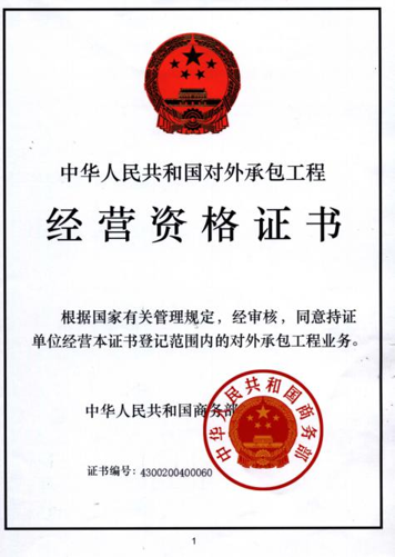 正式獲得商務(wù)部頒發(fā)的對(duì)外經(jīng)濟(jì)合作經(jīng)營資質(zhì)資格證書。