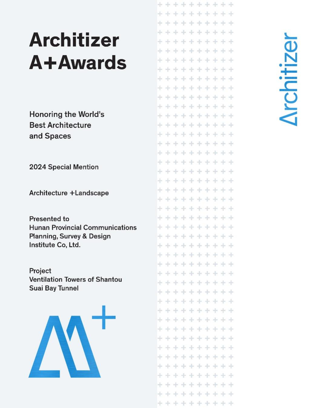 日前,2024年第十二屆Architizer A+ Awards(美國A+獎)獲獎?wù)呙麊握焦肌:辖ㄍ督煌ㄔO(shè)計院憑借作品“汕頭市蘇埃海灣隧道風(fēng)塔項目”榮獲該獎項“建筑+景觀”類別特別提名獎。 據(jù)項目設(shè)計主創(chuàng)、湖南交通設(shè)計院副總工程師石東浩介紹,蘇埃海灣隧道連接汕頭一灣兩岸,基于建設(shè)...