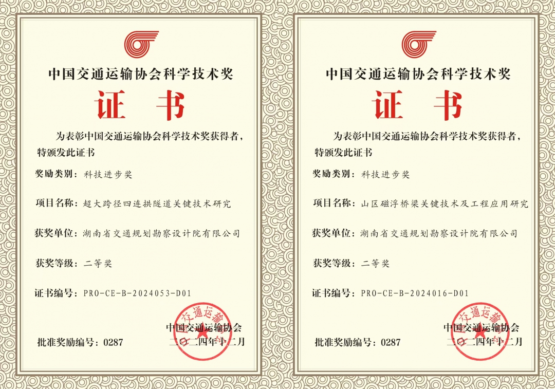 近日,湖南省交通規(guī)劃勘察設(shè)計院有限公司在科技創(chuàng)新與工程創(chuàng)優(yōu)領(lǐng)域捷報頻傳:2項(xiàng)核心技術(shù)成果榮獲2024年度中國交通運(yùn)輸協(xié)會科技進(jìn)步二等獎;27項(xiàng)工程勘察設(shè)計成果在湖南省優(yōu)秀工程勘察設(shè)計成果評定中榮獲9項(xiàng)一等獎、8項(xiàng)二等獎、10項(xiàng)三等獎,獲獎數(shù)量與質(zhì)量均創(chuàng)造歷史紀(jì)錄,彰顯了行業(yè)...