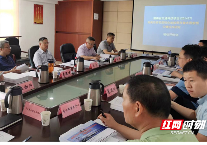 近日,湖南省交通運輸廳、湖南省公路學會組織召開項目驗收評價會,對湖南交通設計院主持的湖南省交通科技項目“超高性能輕型組合加勁梁自錨式懸索橋關鍵技術研究”進行驗收評價。