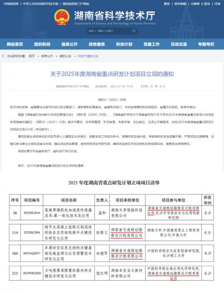 湖南交通設(shè)計(jì)院四項(xiàng)創(chuàng)新項(xiàng)目獲湖南省重點(diǎn)研發(fā)計(jì)劃立項(xiàng)